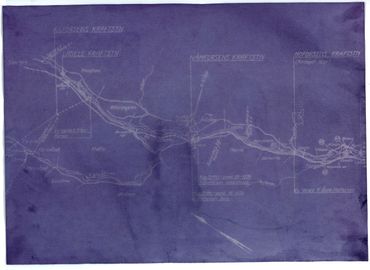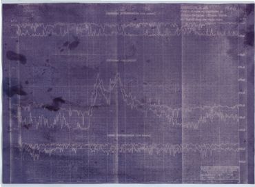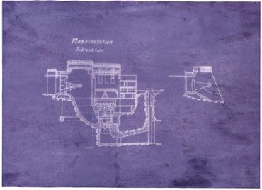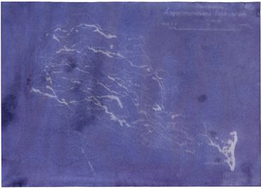 “Blue(berry) prints” (2023) digital print copies of anthotypes, or plant-based photographs, made from blueberry emulsion and images from the mapping and planning documents archived by Vattenfall (Vattenfall’s central archive in Näsåker & the Swedish National Archive in Härnösand). The original anthotypes are made by several-week long exposures in the sun and cannot be fixed.
